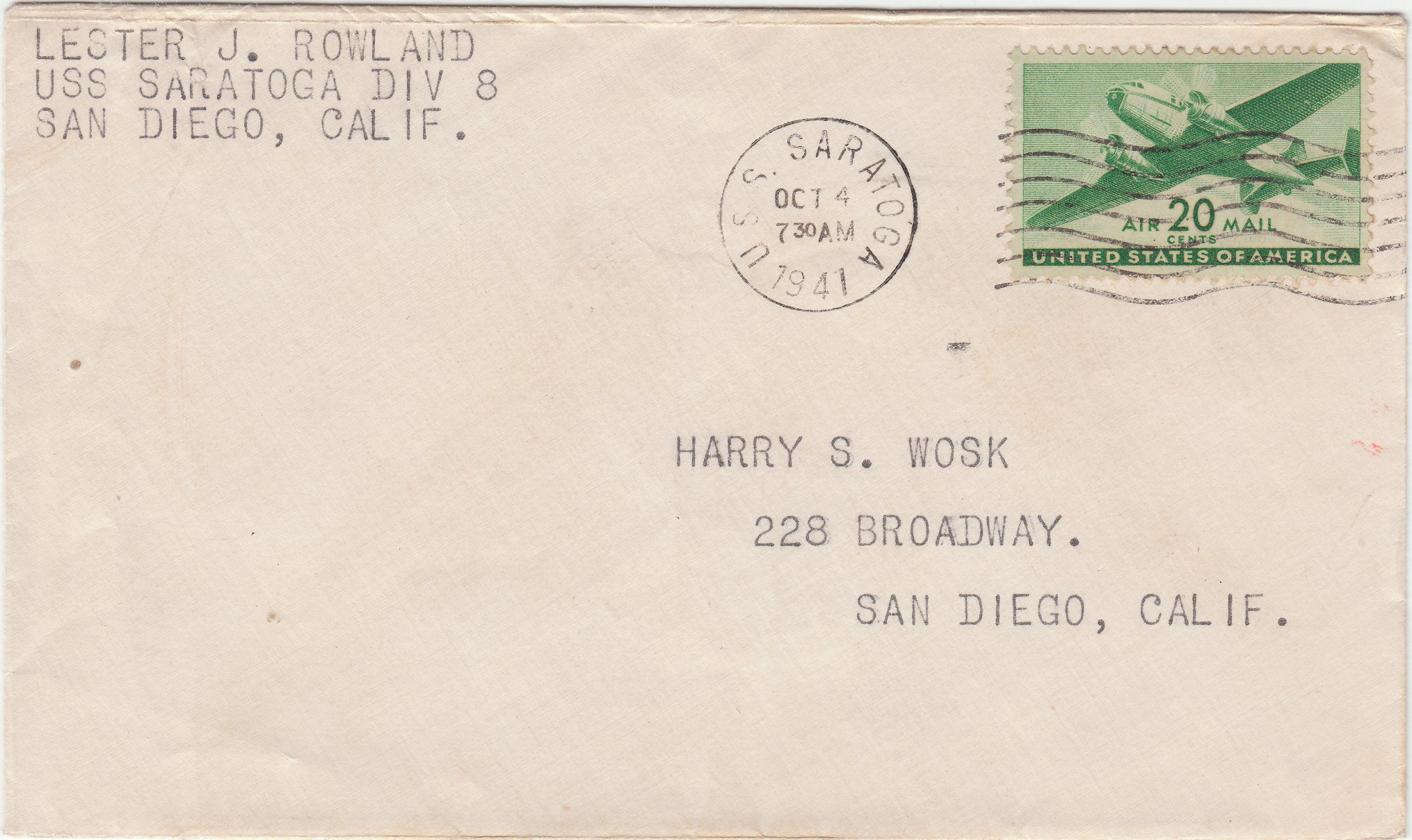 Dieser Beleg vom 04.10.1941 trägt einen Maschinenstempel von Bord des Schiffes: