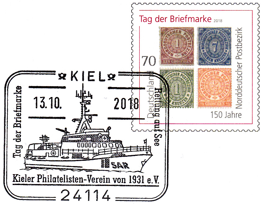 Sonderstempel aus Kiel vom 13.10.2018 zum Tag der Briefmarke 2018 des Kieler Philatelisten-Vereins.