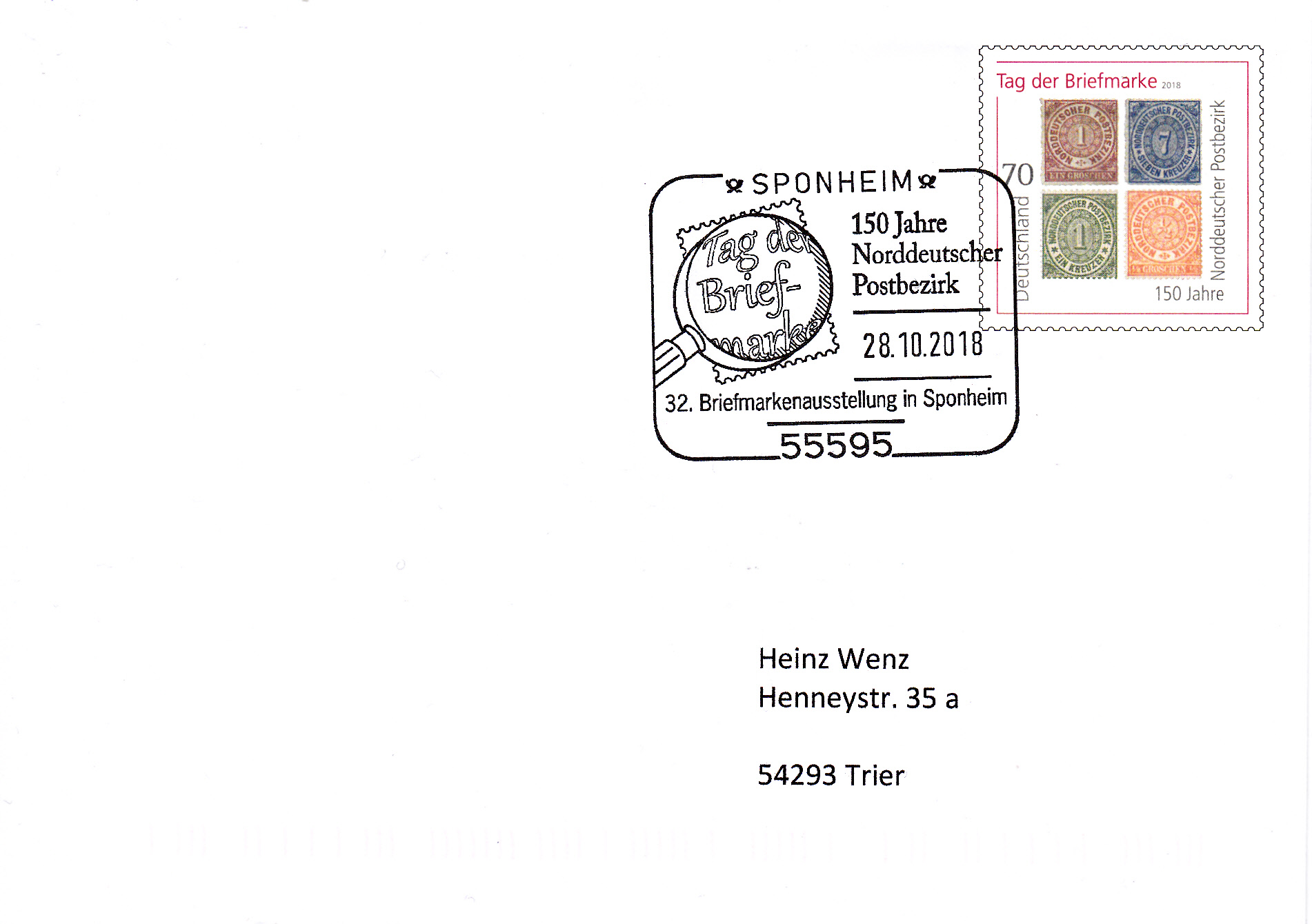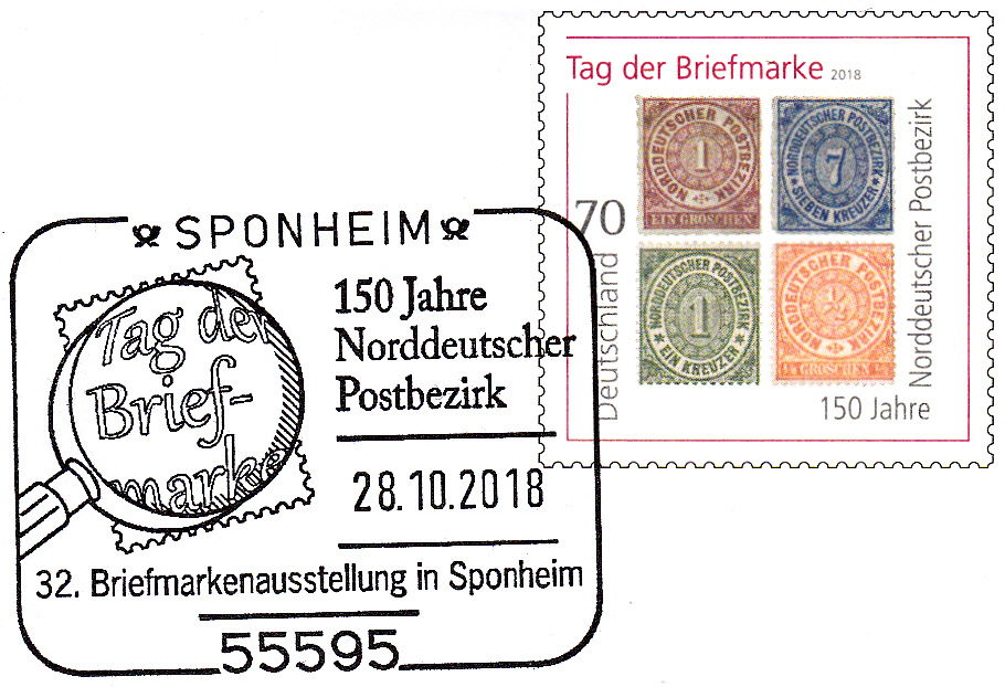 Sonderstempel aus Sponheim vom 28.10.2018 zum Tag der Briefmarke 2018 anlässlich einer Briefmarkenausstellung.