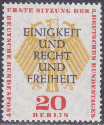 Zur konstituierenden Sitzung des Bundestags am 15. Oktober 1957 erschien in Berlin diese Marke zu 10 Pfennig (MiNr 174).