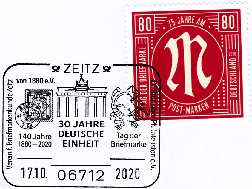 Am 17.10.2020 gab es in Zeitz den Sonderstempel des Landesverbandes Thüringer Philatelisten e.V.
