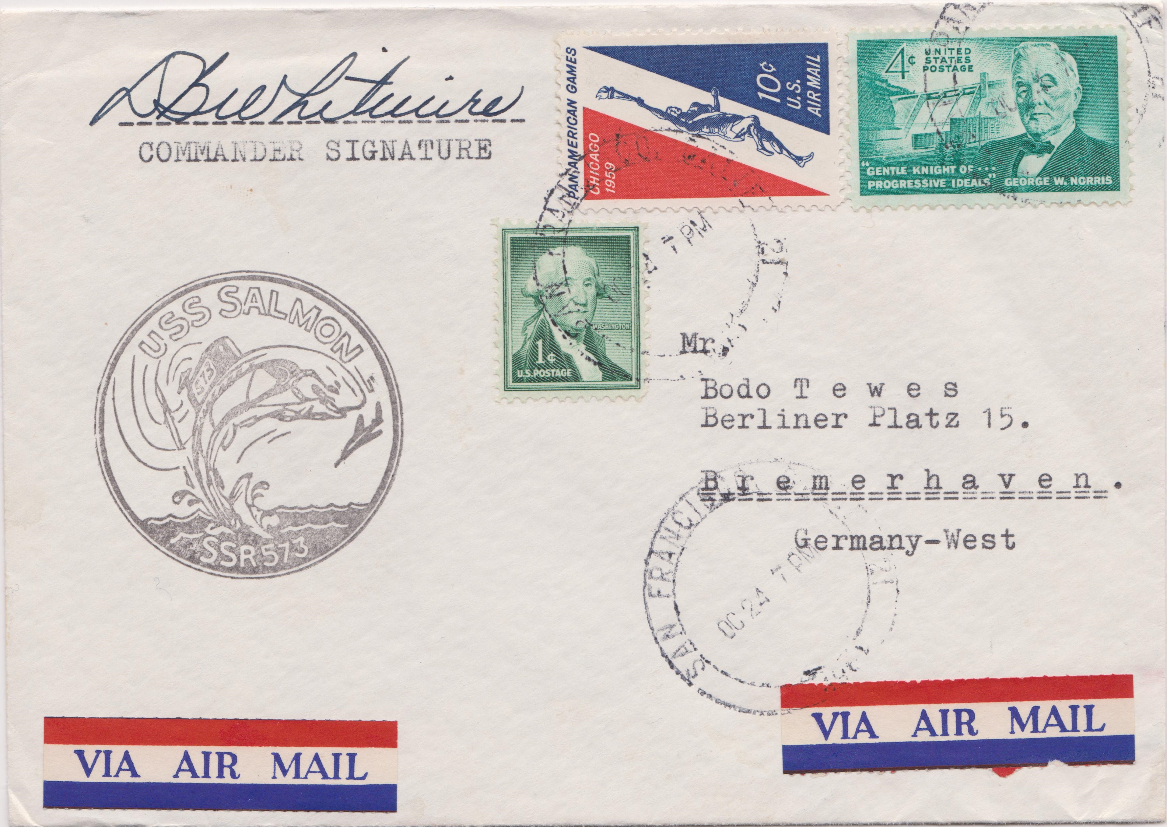 Hier ein Beleg mit dem Cashetstempel der USS SALMON: