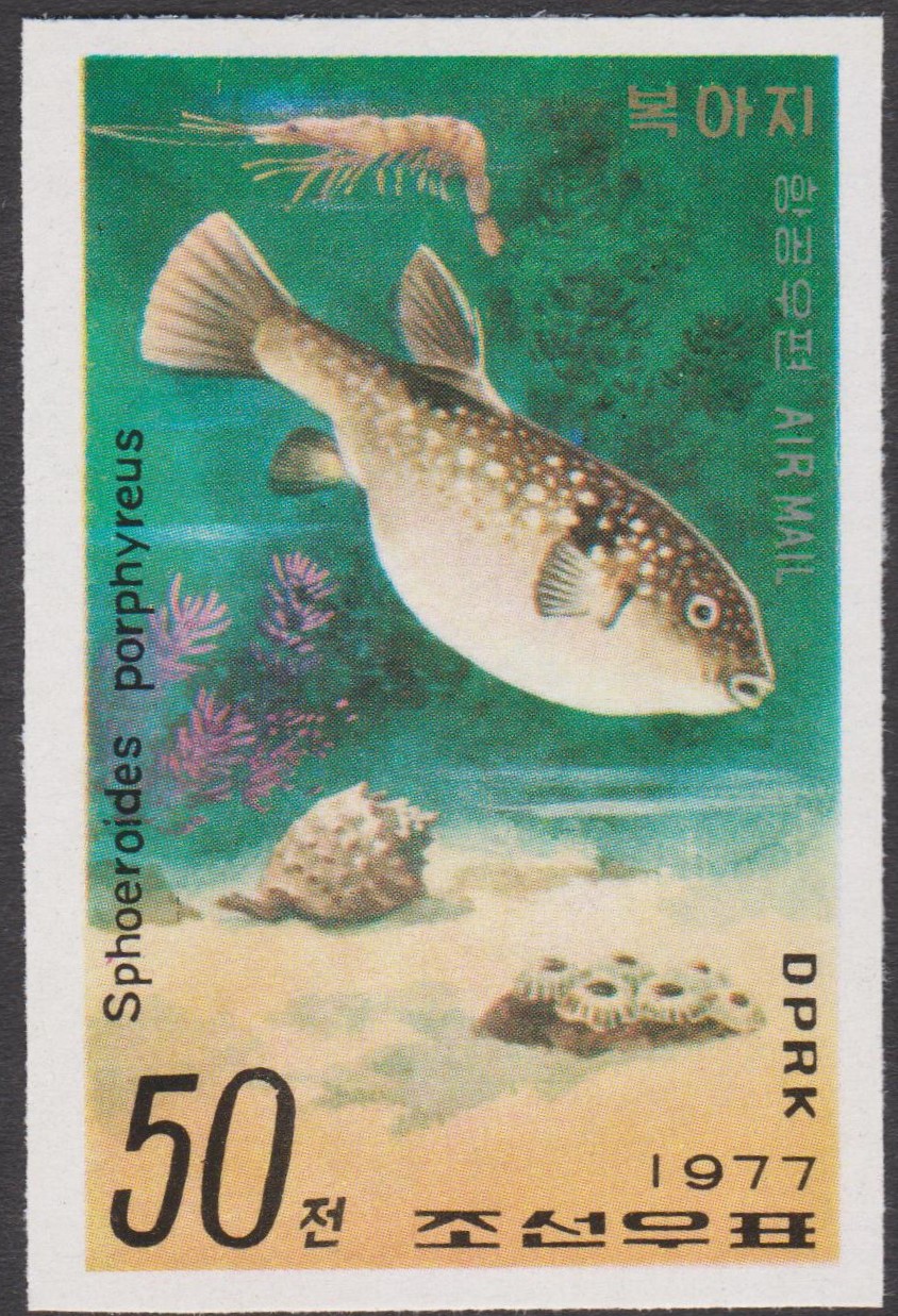 Nordkorea MiNr. 1672 zeigt einen Kugelfisch "Sphoeroides porphyreus":