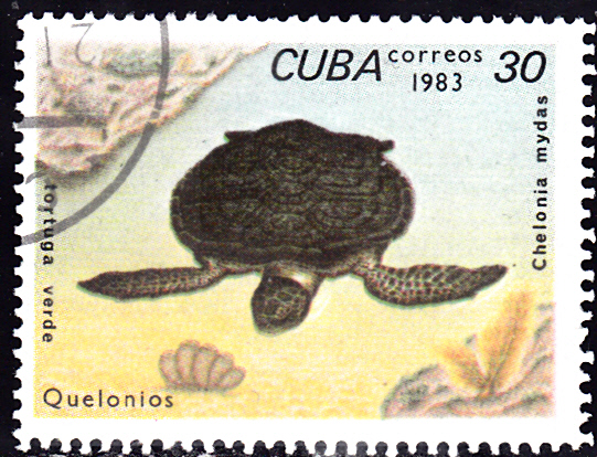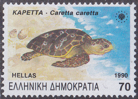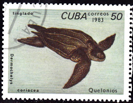 Aus einer Ausgabe "Geschützte Tierarten" aus Spanien kommt diese Marke (MiNr 4993) mit einer Lederschildkröte (Dermochelys coriacea). Bei der gezeigten Marke handelt es sich um eine Mustermarke.