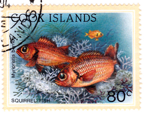 Und jetzt kommt die Marke (MiNr 1415) mit dem Großschuppen-Soldatenfisch (Myripristis berndi).