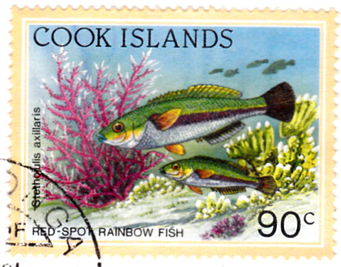 Auf dieser Marke der Cook-Inseln (MiNr 1417) zeigt laut Beschriftung auf der Marke zwei Fische der Art Stethojulius axillaris. In der Aufzählung aller zehn Arten kommt dieser Name nicht vor. Diese Bezeichnung soll ein Synonym sein für Stethojulis balteata. Es kann sich also um den Gürtelstreifen-Junker (Stethojulis balteata) handeln. Bei Michel wird als Name einfach Lippfisch (Stethojulius axillaris) angegeben.