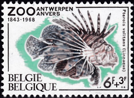 In einer Serie "Einheimische Tiere in Feuchtgebieten" ist in Jugoslawien diese Marke (MiNr 1642) mit einer Rotfeder (Scardinius erythrophthalmus) erschienen.