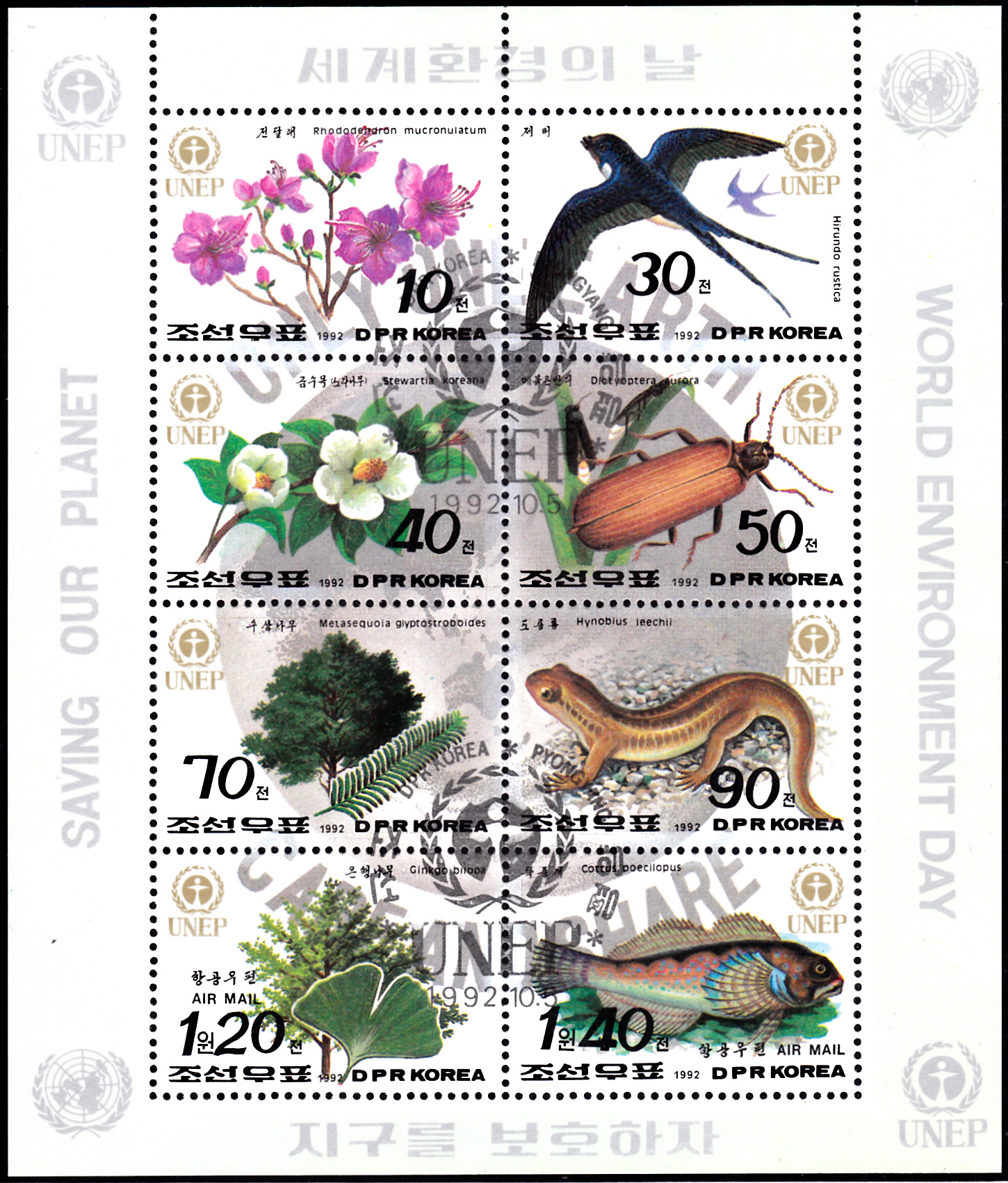 Diese Marke wurde zusammen mit sieben weiteren Marken in einem Kleinbogen zum Thema Internationaler Tag der Umwelt gedruckt. Hier zeige ich einen kompletten Kleinbogen.