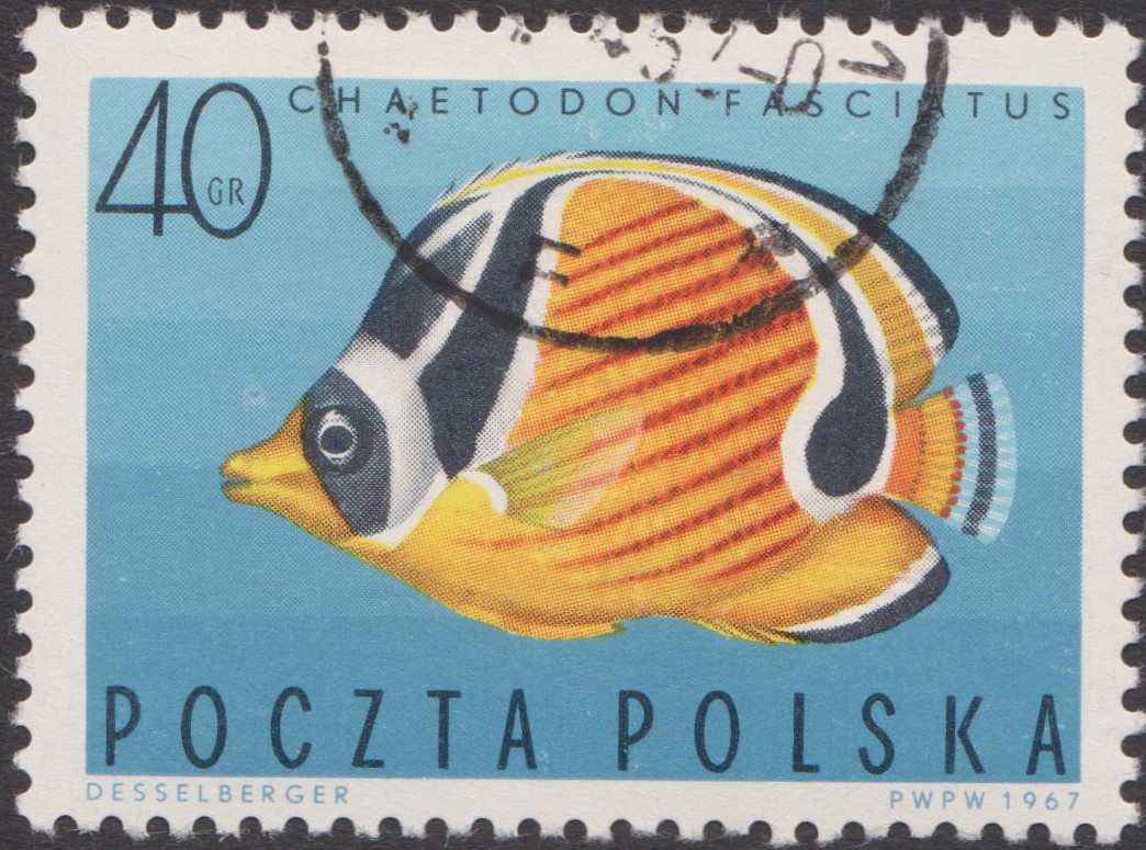Hier ein Chaetodon fasciatus = Gebänderter Faltenfisch auf Polen MiNr. 1750: