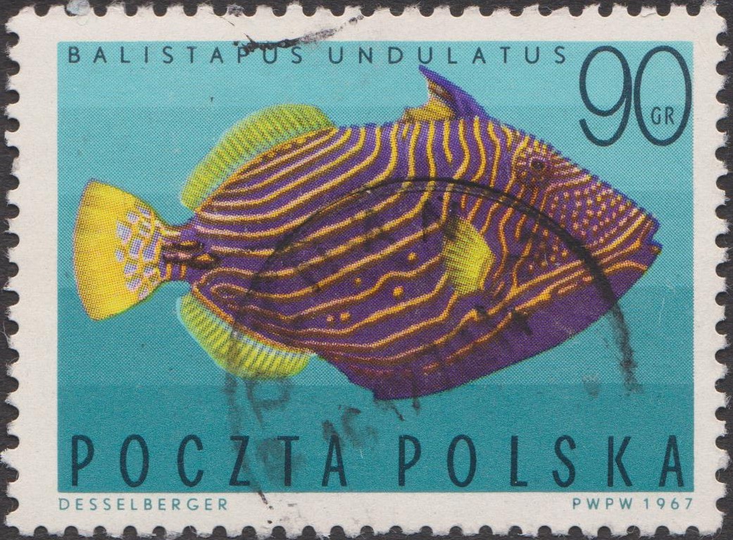 Hier ein Picasso-Drückerfisch auf Polen MiNr. 1753: