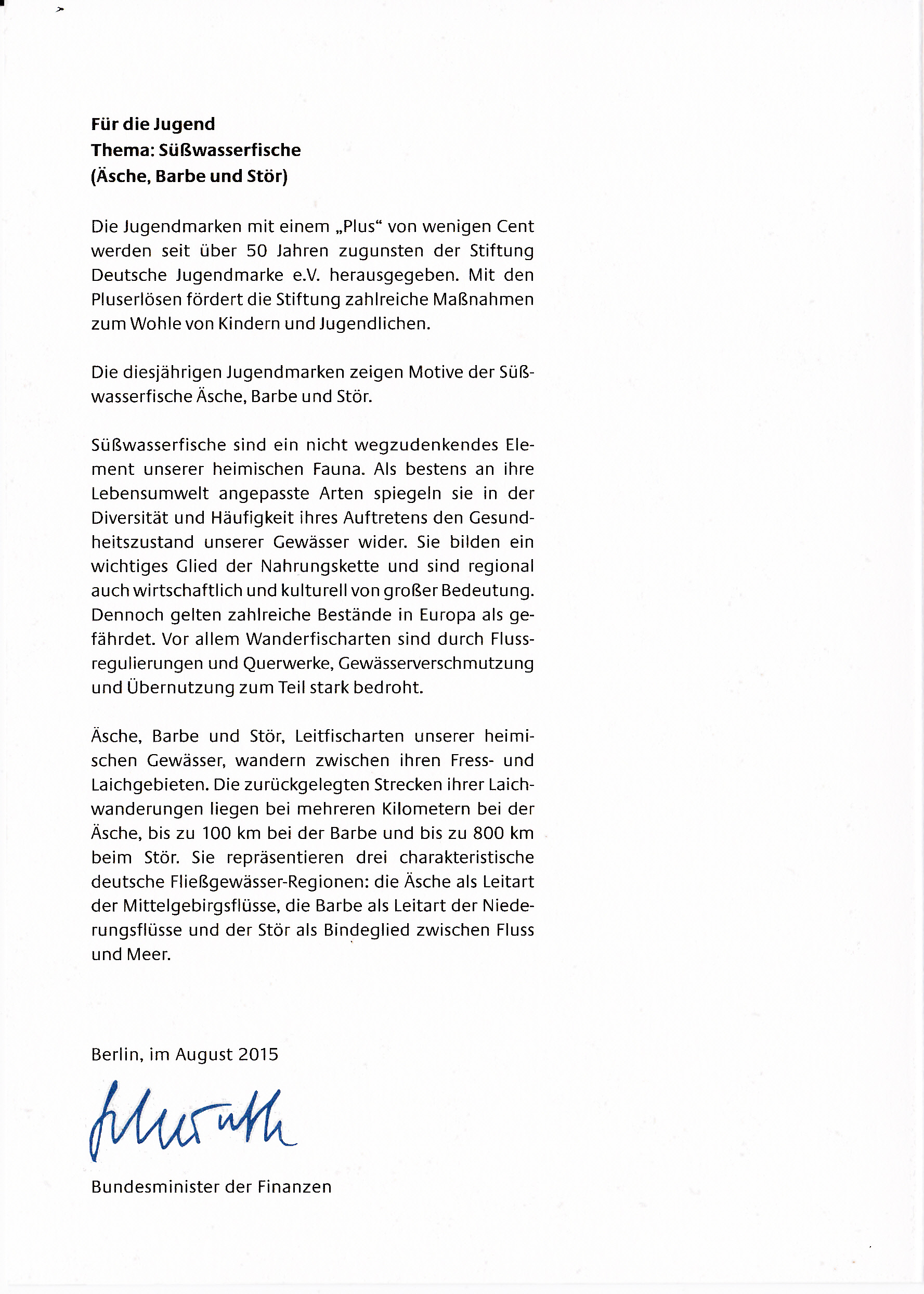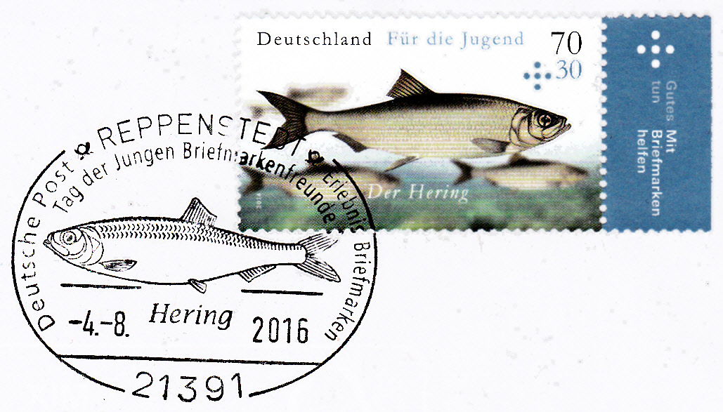 Am 4.8.2016, dem Ersttag der Marke, gab es in Reppenstedt einen zum Markenmotiv passenden Sonderstempel zum Tag der Jungen Briefmarkenfreunde mit einem Hering.
