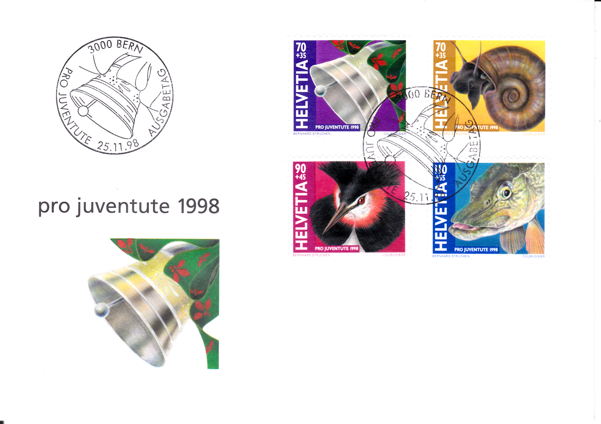 Es gibt auch FDCs mit allen vier Marken "Pro Juventute".