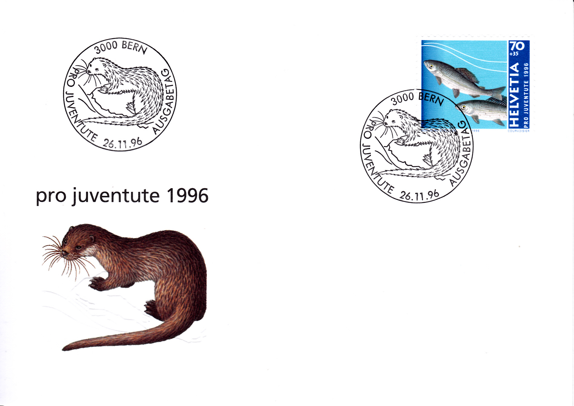 Auf einer Marke der Schweiz (MiNr 1598) sehen wir zwei Fische der hier schon beschriebenen Europäischen Äsche (Thymallus thymallus).