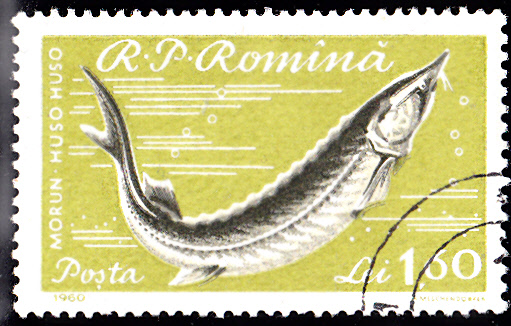 Der Europäische Hausen (Huso huso) wurde hier bereits von Rüdiger vorgestellt. Hier eine Marke aus Rumänien (MiNr 1933) mit einem weiteren Europäischen Hausen (Huso huso).