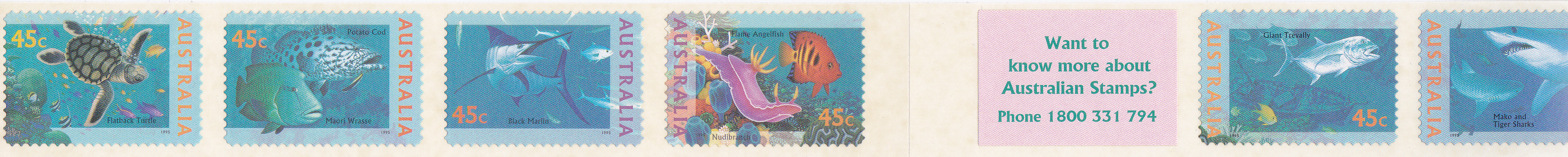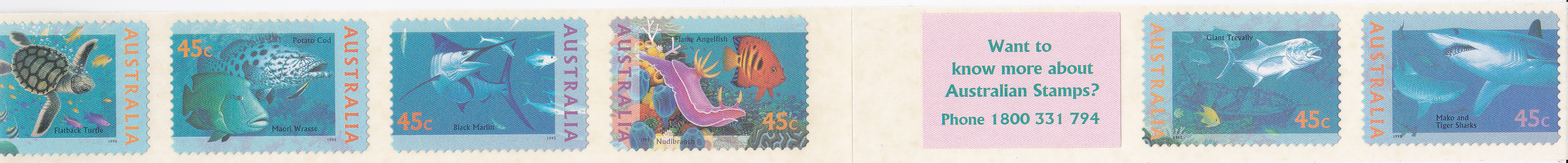 Auch die Marke mit dem Schwarzen Marlin (Istiompax indica) gibt es als selbstklebende Marke (MiNr 1521).