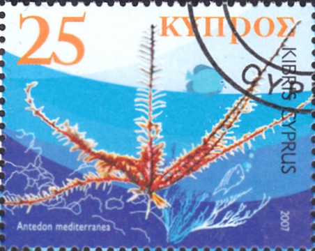 Auf dieser Marke aus Zypern (MiNr 1087) ist ein Mittelmeer-Haarstern (Antedon mediterranea) zu sehen.