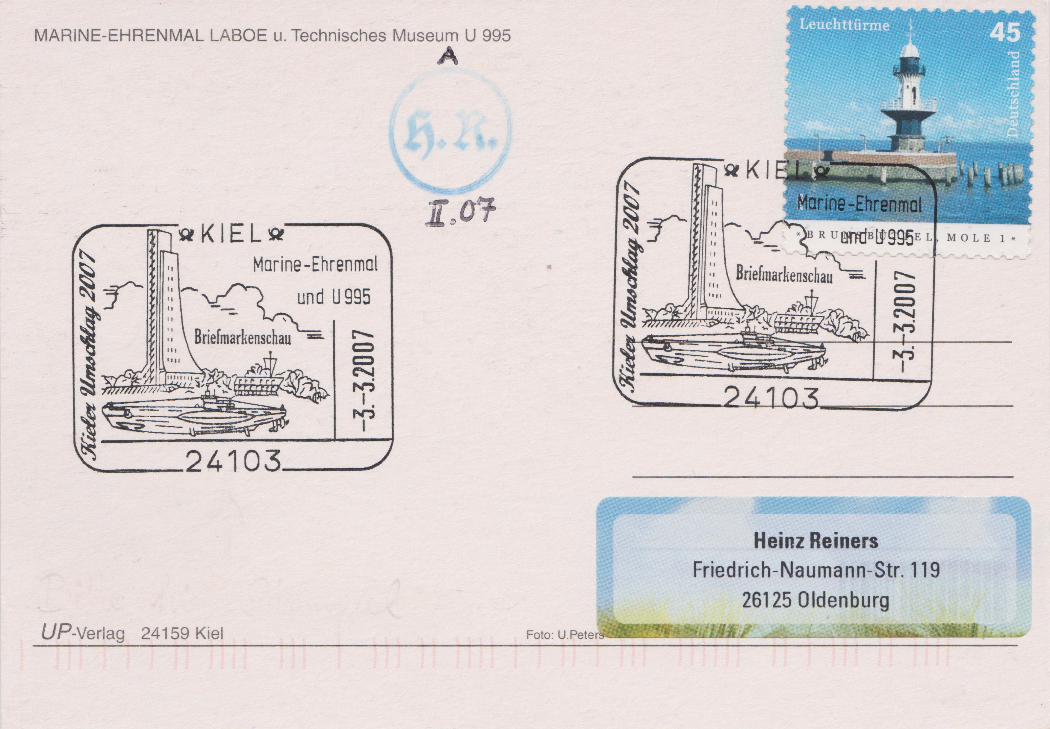Hier eine Ansichtskarte, die einen zum Thema passenden Sonderstempel vom 03.03.2007 zeigt: