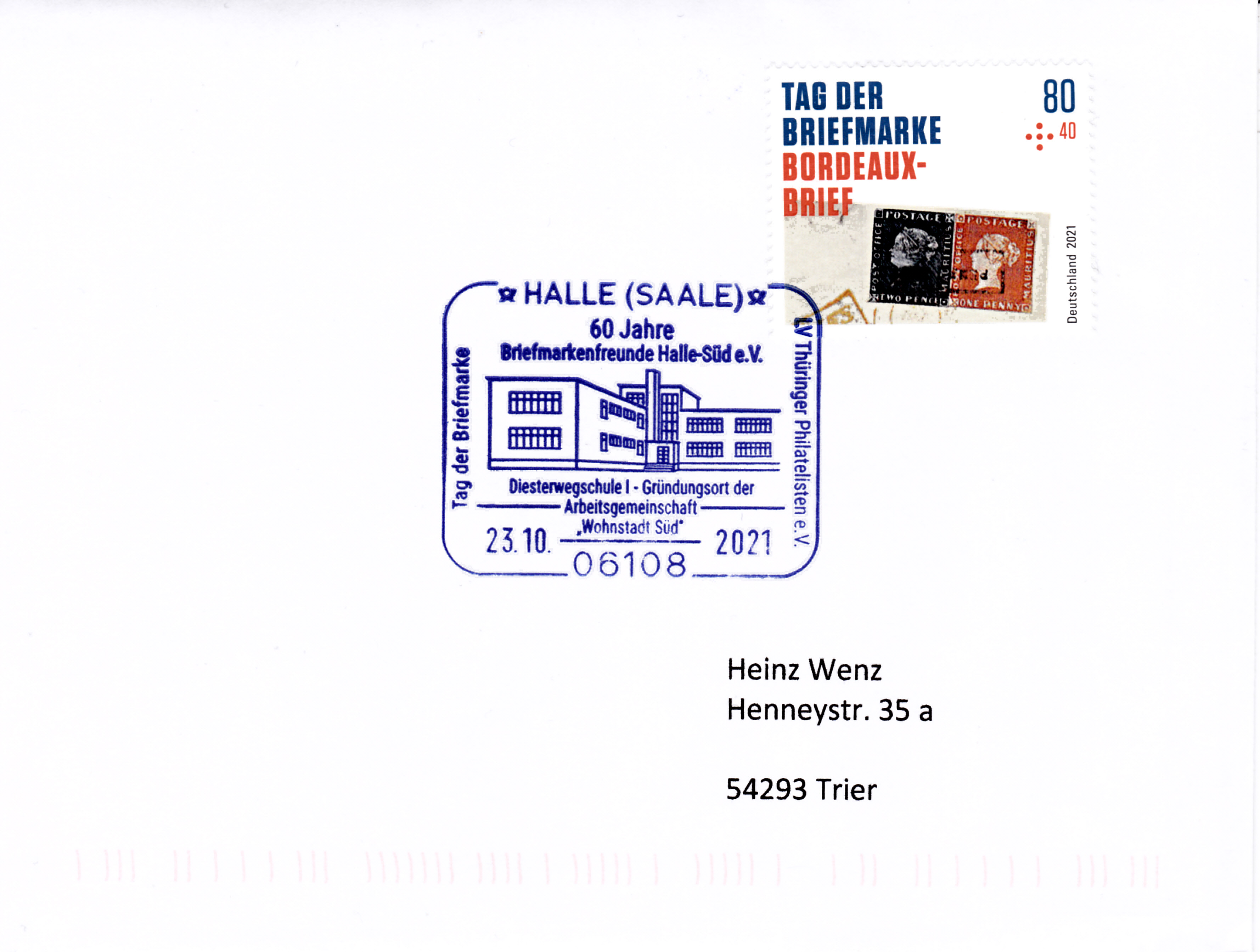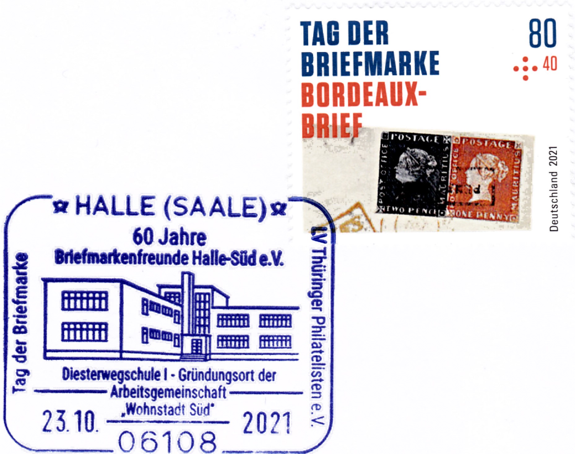 Sonderstempel zum Tag der Briefmarke 2021 aus Halle vom 23.10.2021.
