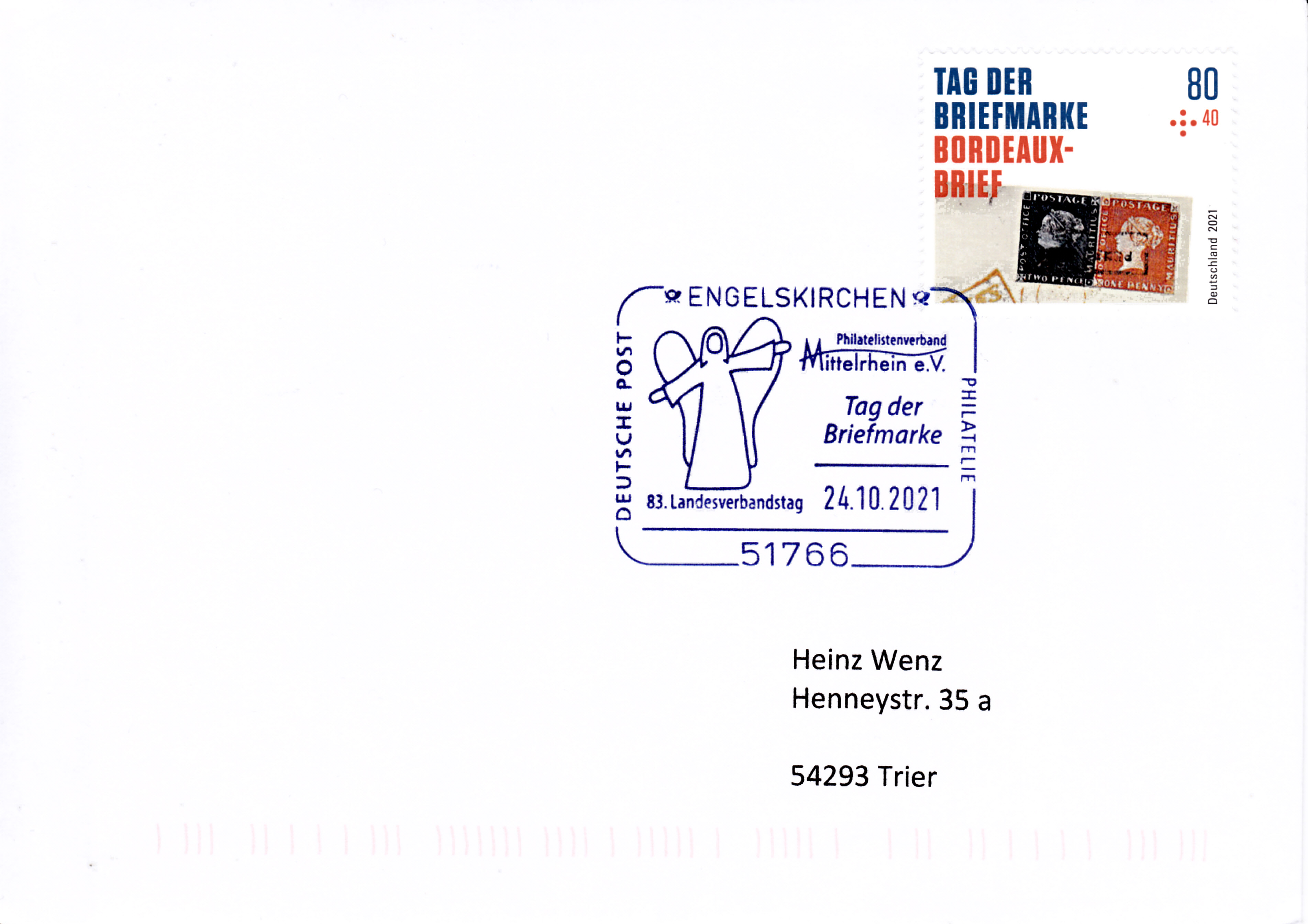 Sonderstempel zum Tag der Briefmarke 2021 aus Engelskirchen vom 23.10.2021.