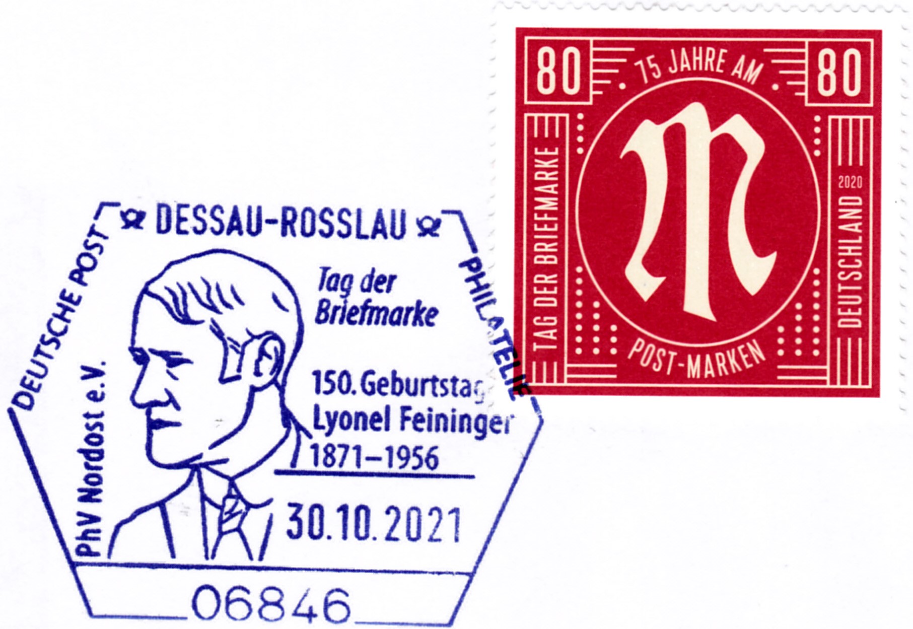 Sonderstempel zum Tag der Briefmarke 2021 aus Dessau-Rosslau vom 30.10.2021.