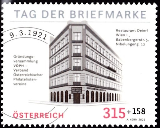 In Österreich ist am 24.9.2021 eine Marke (MiNr 3607) zum Tag der Briefmarke erschienen. Sie zeigt das Gründungsgebäude des VÖPH in Wien.