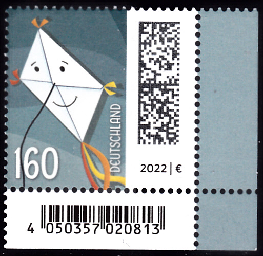 Am 2.12.2021 ist die nassklebende Marke zu 160 Cent (MiNr 3647) aus der Dauerserie "Welt der Briefe" erschienen. Sie zeigt eine "Briefdrachen". Obwohl schon 2021 erschienen wird am Unterrand der Marke das "Ausgabejahr" mit "2022" angegeben.