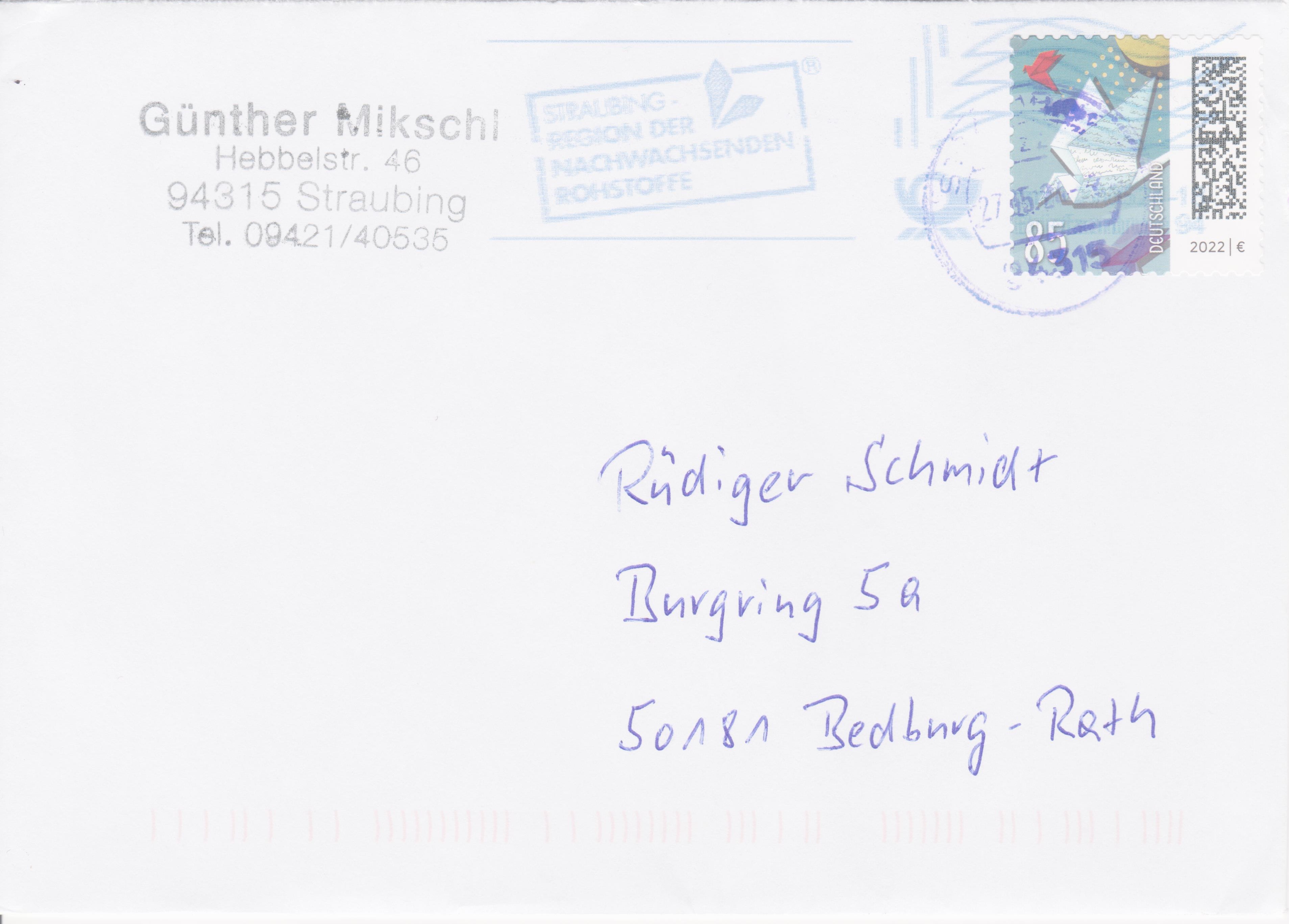Einzelfrankatur MiNr. 3652 portogerecht auf echt gelaufenem Brief aus STRAUBING: