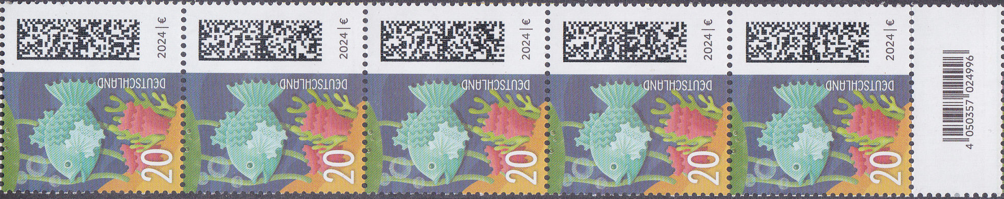 Am 2. November 2024 ist eine Marke zu 20 Cent mit dem Motiv "Blaugelber Zackenbarsch (Epinephelus flavocaeruleus) mit Briefmarken-Flossen" erschienen.