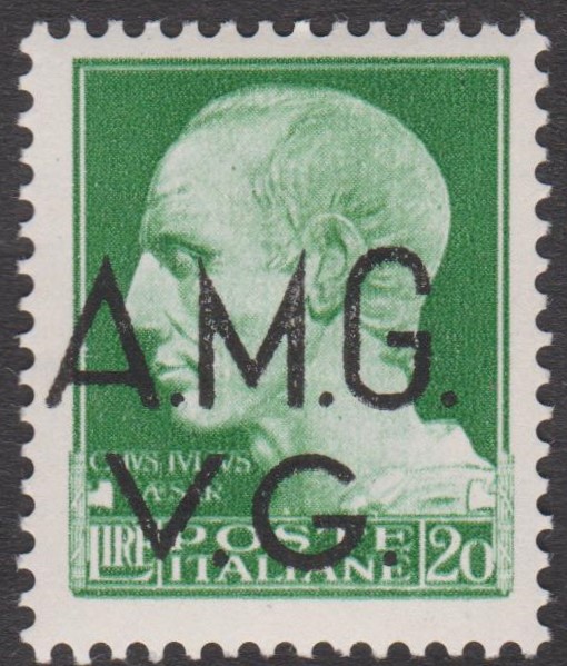 Italienische Postwertzeichen mit Aufdruck A.M.G V.G. (= Allied Military Government Venezia Guilia)