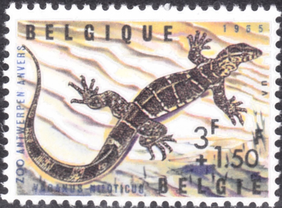 1965 ist in Belgien in einer Serie "Tiere aus dem Zoo von Antwerpen" diese Marke (MiNr 1403) mit einem Nilwaran (Varanus niloticus) erschienen.