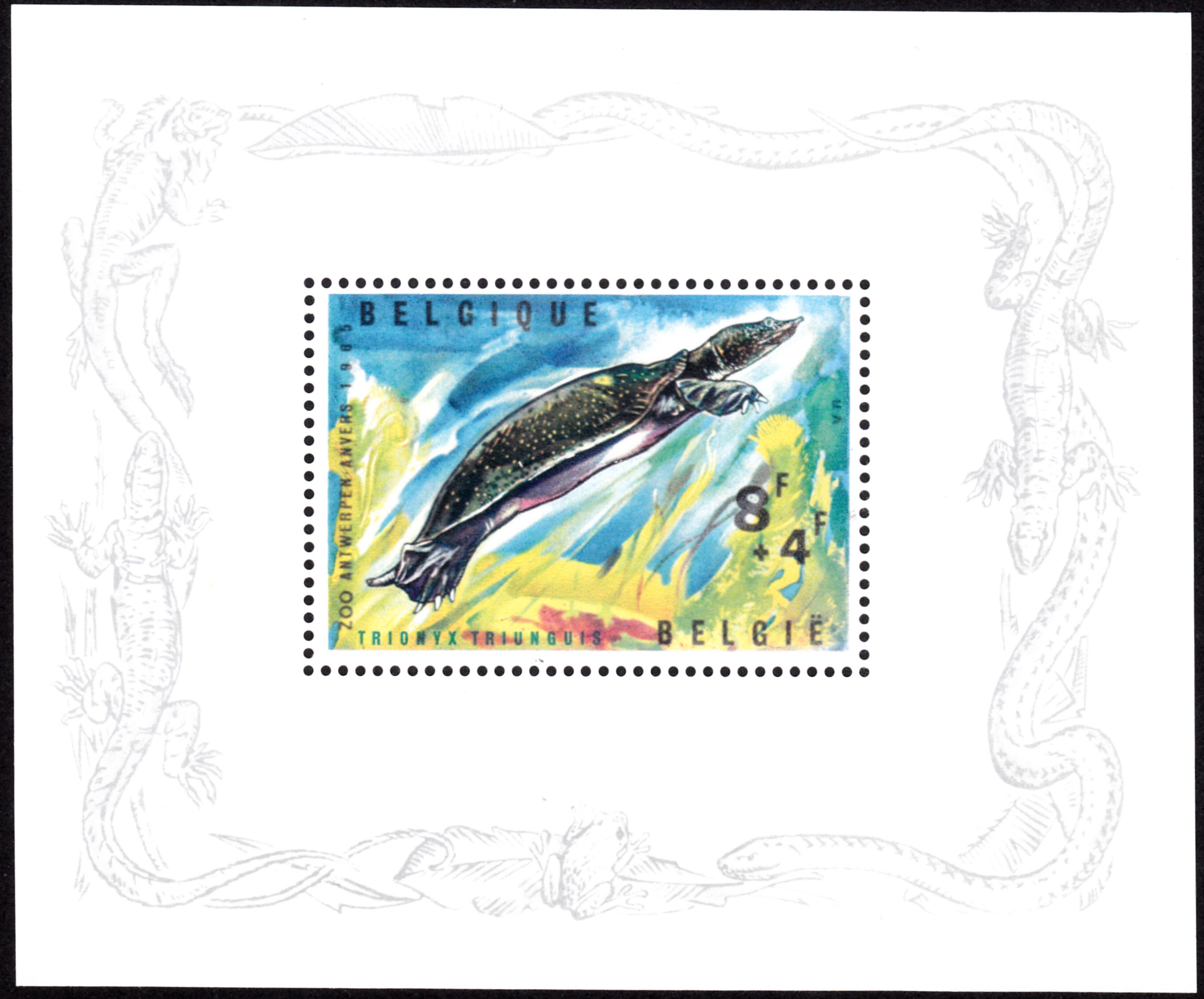 1965 ist in Belgien in einer Ausgabe "Tiere aus dem Zoo von Antwerpen" dieser Block (MiNr Block 33 mit Marke 1405) mit einer Afrikanischen Weichschildkröte (Trionyx triunguis) erschienen. Bei Michel wird als Name Afrikanische Dreiklaue (Trionyx triunguis) genannt.