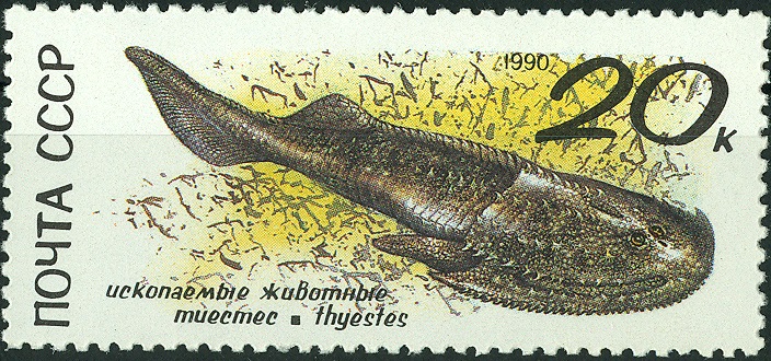 Hier eine Marke mit einem der Urtiere auf einer 1990 erschienenen postfrischen CCCP-"P"arke. Natürlich "M"arke. ;)