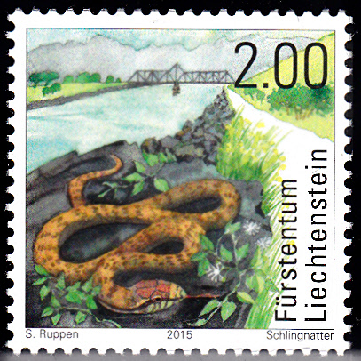 Hier eine Marke aus Liechtenstein (MiNr 1759) mit einer Schlingnatter.