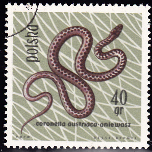 Auf dieser Marke aus Polen (MiNr 1394) wird die bereits hier vorgestellte Schlingnatter oder Glattnatter (Coronella austriaca) abgebildet.