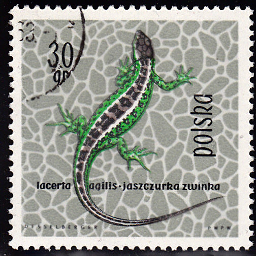 Auf dieser Marke aus Liechtenstein (MiNr 1760) wird eine Waldeidechse oder Bergeidechse(Zootoca vivipara) vorgestellt.