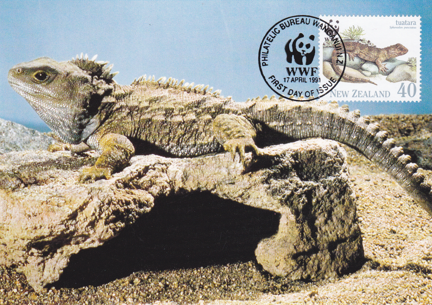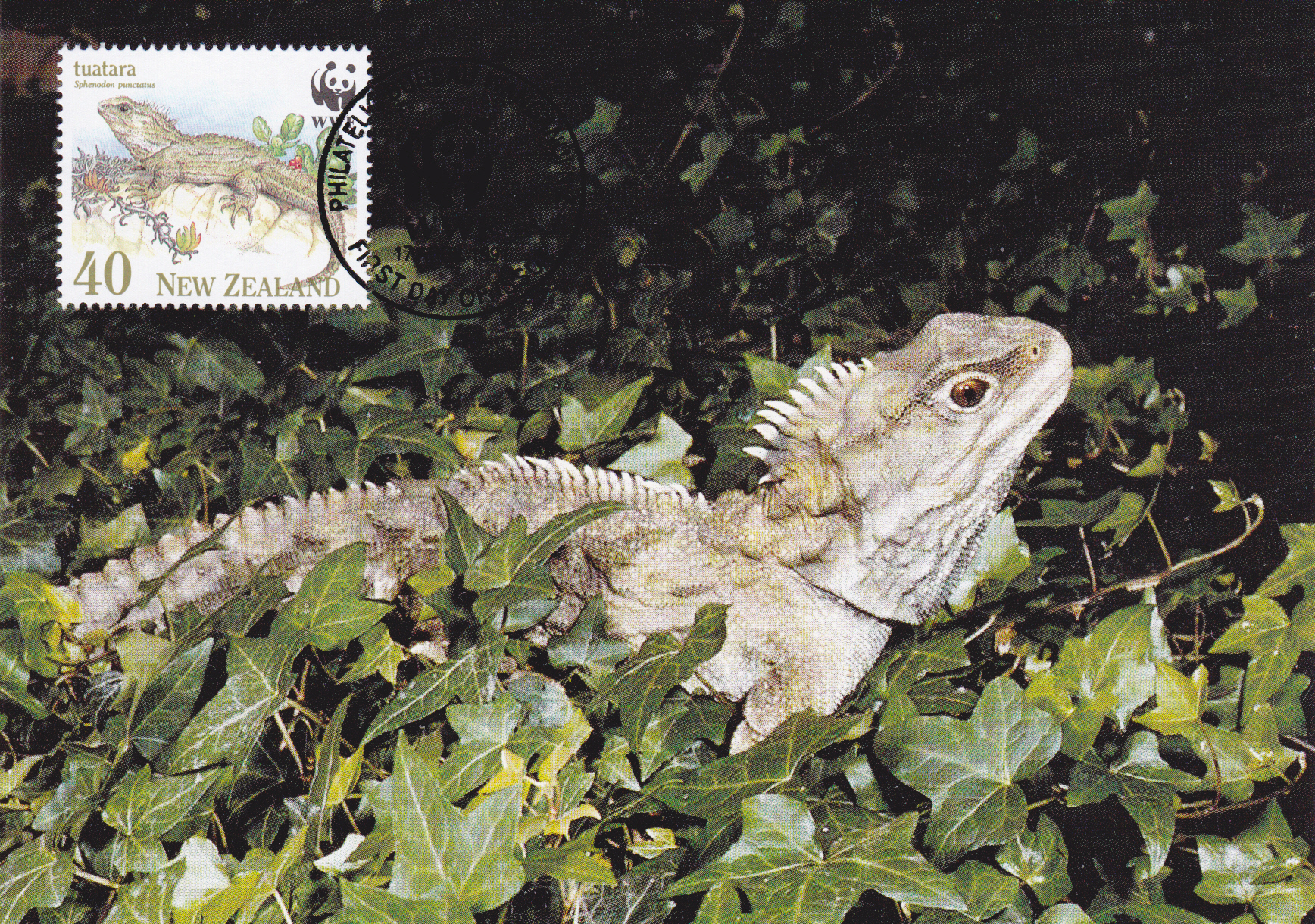 In Neuseeland ist diese Marke (MiNr 1160) mit einer Brückenechse oder Tuatara (Sphenodon punctatus) erschienen.