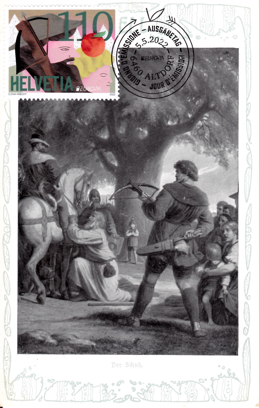 Die Europamarken 2022 sind in der Schweiz am 5. Mai 2022 zum Thema "Märchen, Mythen und Sagen" erschienen. Die Marken zeigen Darstellungen zur Sage "Wilhelm Tell". Eine der Marken zu 110 Rappen zeigt den legendären Freiheitskämpfer und Nationalhelden Wilhelm Tell.