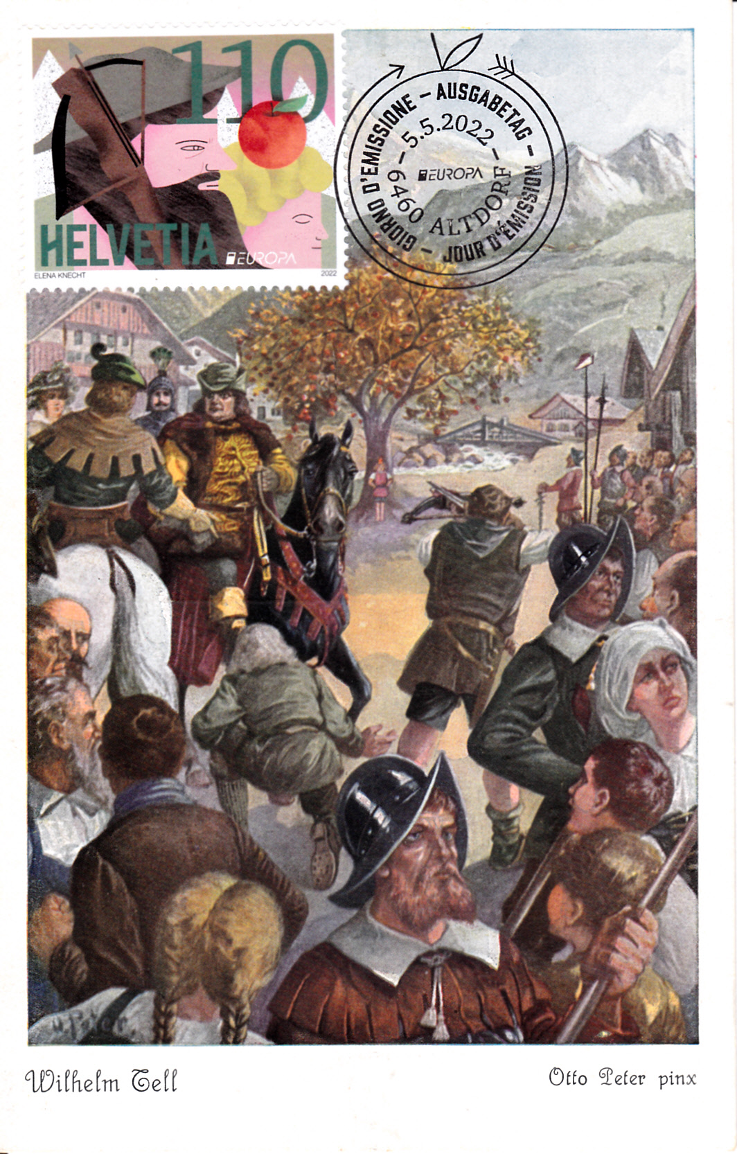 Die Europamarken 2022 sind in der Schweiz am 5. Mai 2022 zum Thema "Märchen, Mythen und Sagen" erschienen. Die Marken zeigen Darstellungen zur Sage "Wilhelm Tell". Eine der Marken zu 110 Rappen zeigt den legendären Freiheitskämpfer und Nationalhelden Wilhelm Tell.