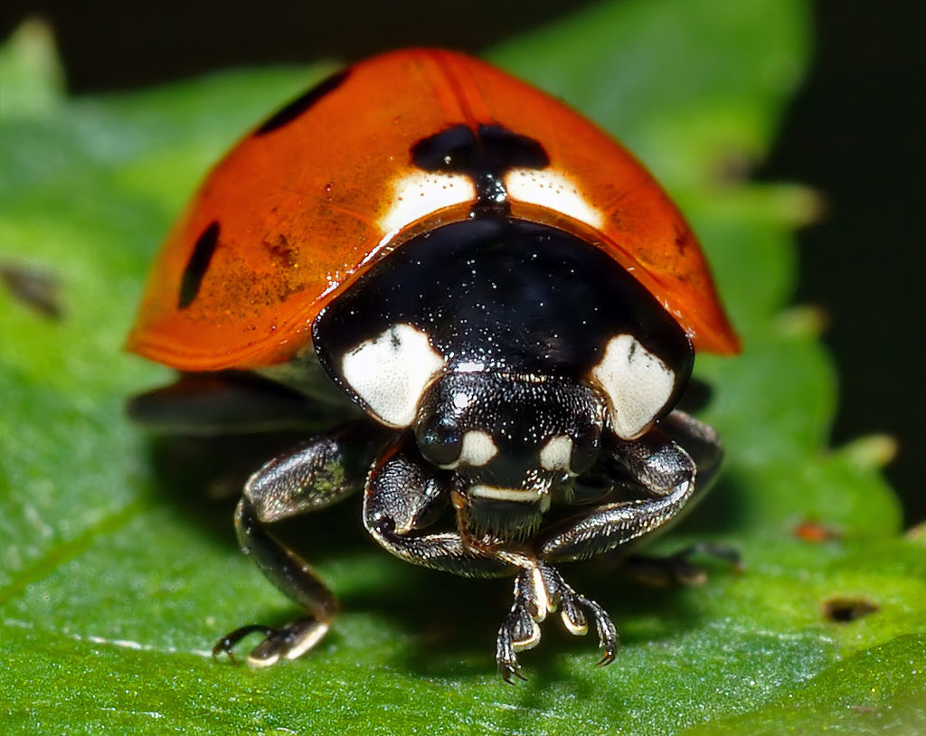 Auf dieser Marke der Alandinseln (MiNr 260) ist ein Siebenpunkt-Marienkäfer (Coccinella septempunctata) abgebildet. Die Marke ist im kombinierten Offsetdruck und Prägedruck hergestellt. Der Käfer ist "erhaben", Am Scan sieht man dies an der "Spiegelung" auf dem Käferrücken.