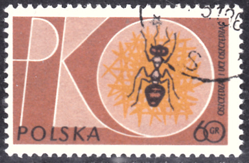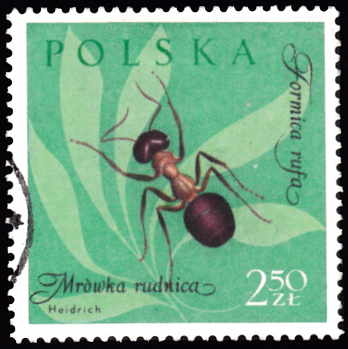 Auch eine Marke aus Polen (MiNr 1287) zeigt uns eine Rote Waldameise (Formica rufa).
