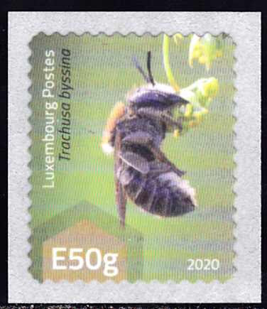 Diese Marke aus Luxemburg (MiNr 2254) bildet eine Große Harzbiene (Trachusa byssina) ab.