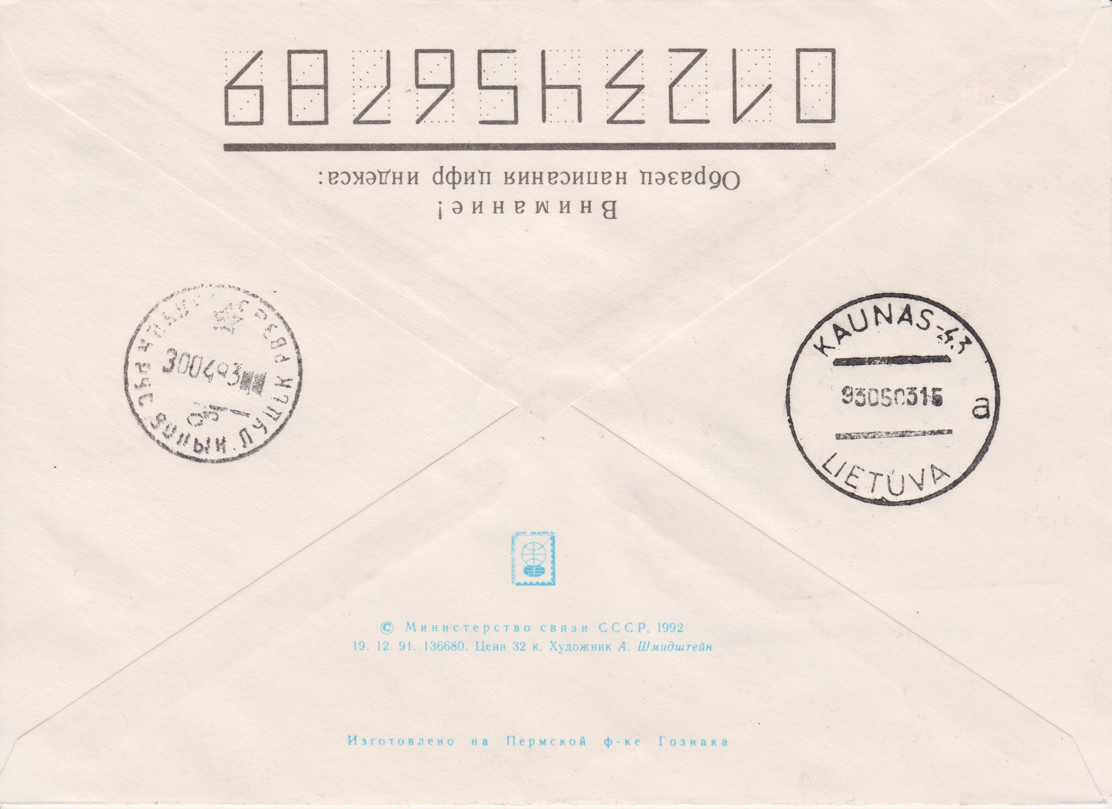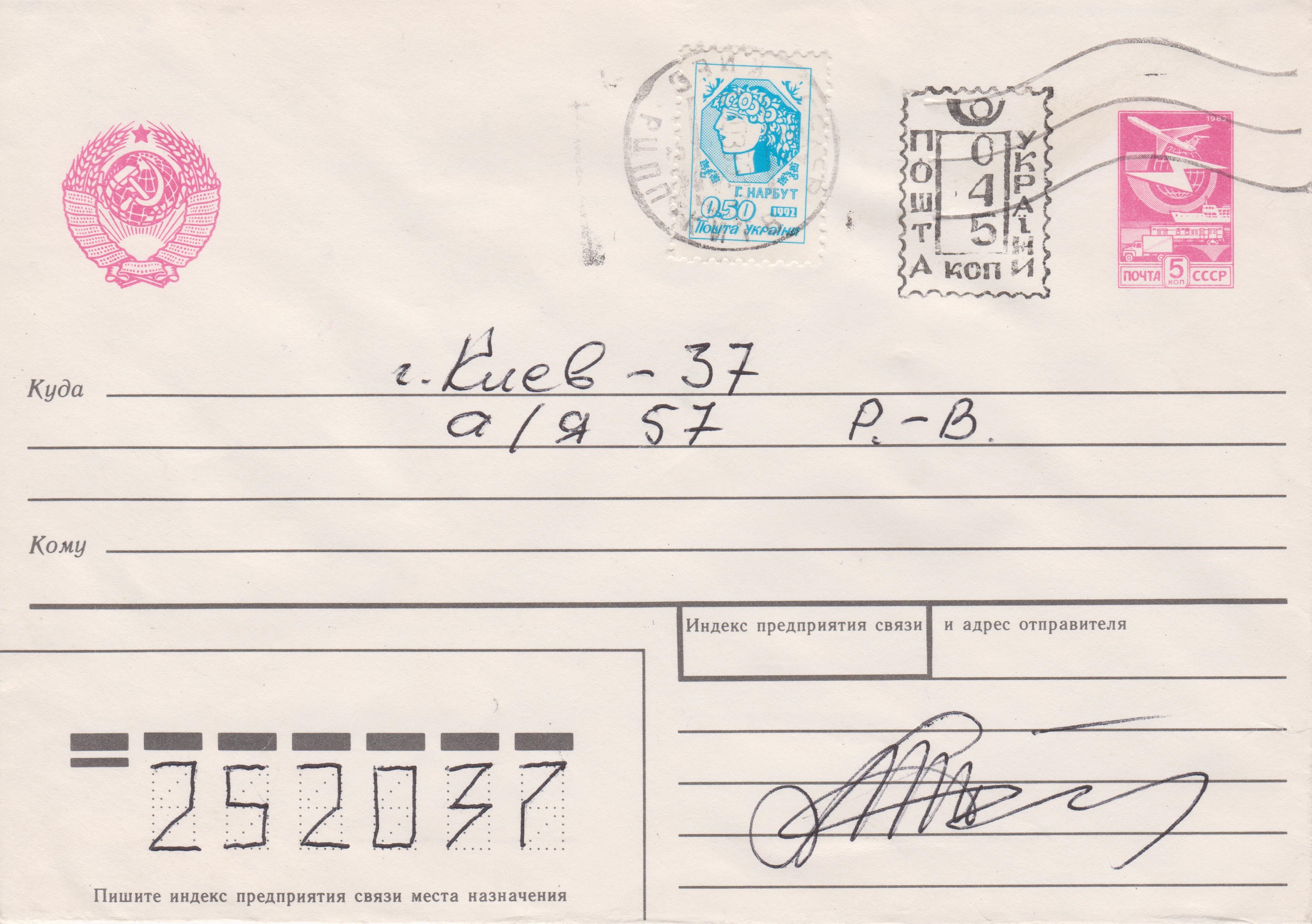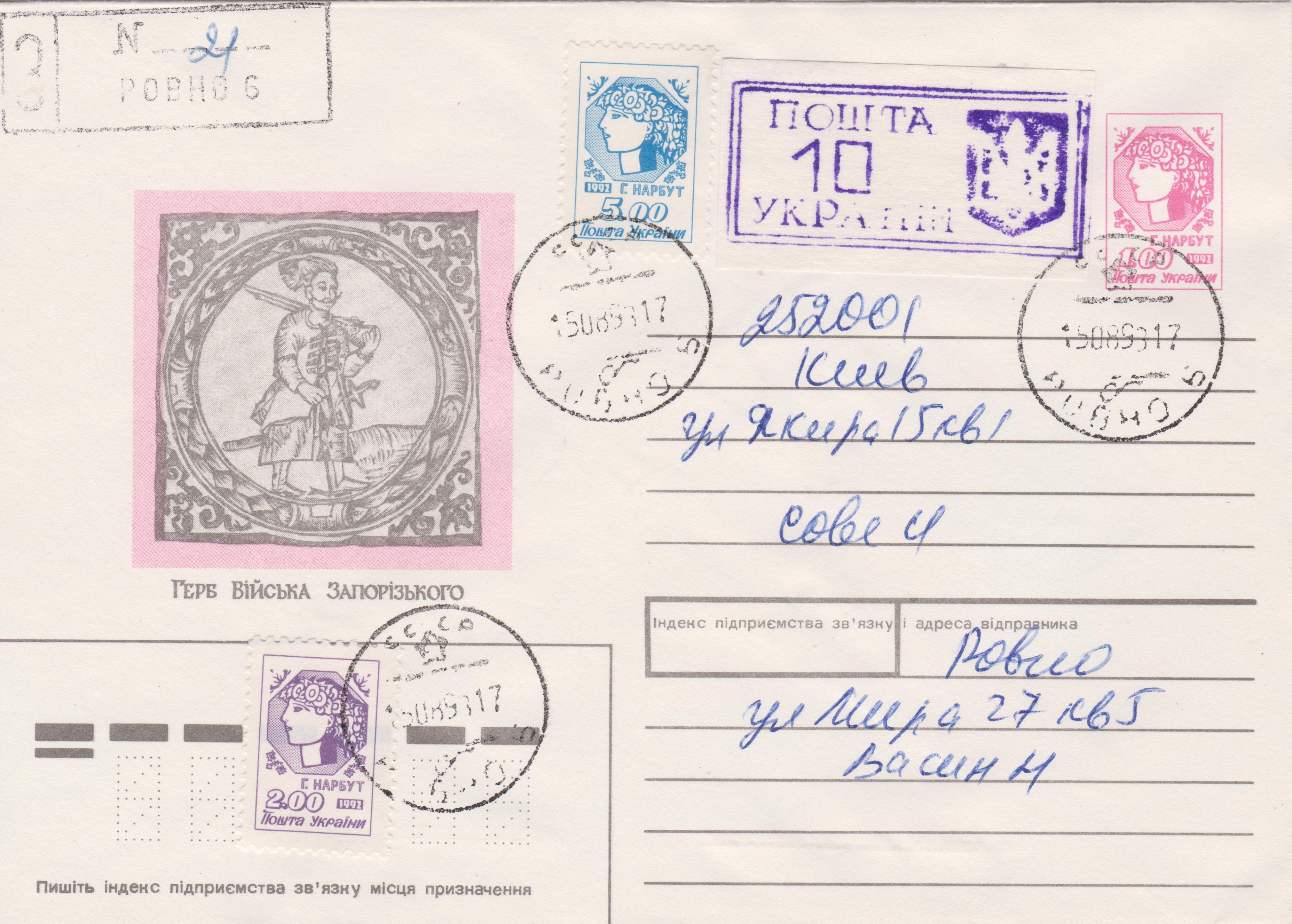 Mischfrankatur Ukraine MiNr. 74 am 09.05.1992 auf Ganzache per Einschreiben: