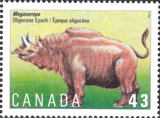 Auf einer Marke aus Kanada (MiNr 1451) wird ein Megacerops gezeigt.