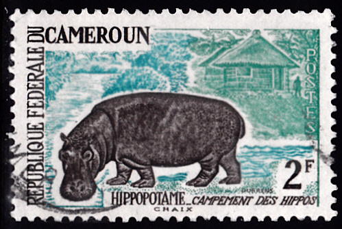 Auf dieser Marke aus Angola (MiNr 385) wird ein Flusspferd (Hippopotamus amphibius) gezeigt.