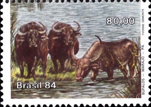 Aus Vietnam kommt diese Marke (MiNr 1987) mit einem Wasserbüffel (Bubalus arnee). Im Michel und auf der Marke wird er noch als Wasserbüffel (Bubalus bubalis) geführt.