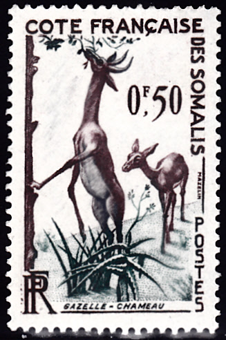 In der Französischen Somaliküste wurde ebenfalls auf einer Marke (MiNr 315) eine Südliche Giraffengazelle (Litocranius walleri) abgebildet.