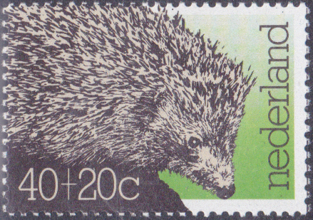 Dieser Igel (Erinaceus europaeus) kommt aus den Niederlanden (MiNr 1070).