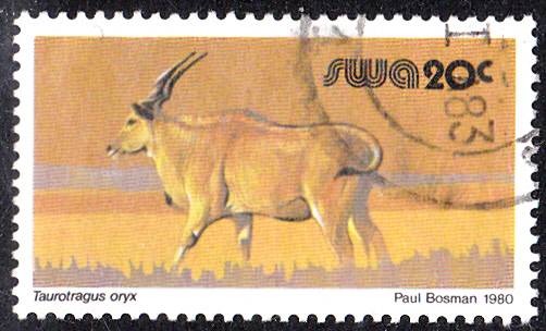 Eine weitere Elenantilope (Taurotragus oryx) wird auf dieser Marke aus Südwestafrika (MiNr 487) gezeigt.