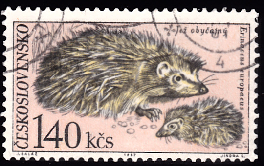 Zwei Igel (Erinaceus europaeus) sehen wir auf dieser Marke aus der Tschechoslowakei (MiNr 1735).