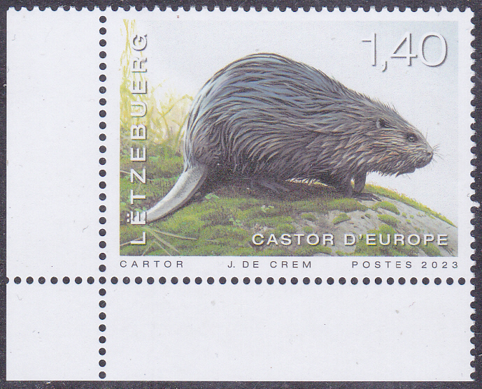 Aus Luxemburg kommt diese Marke (MiNr 2330) mit einem Europäischen Biber (Castor fiber).